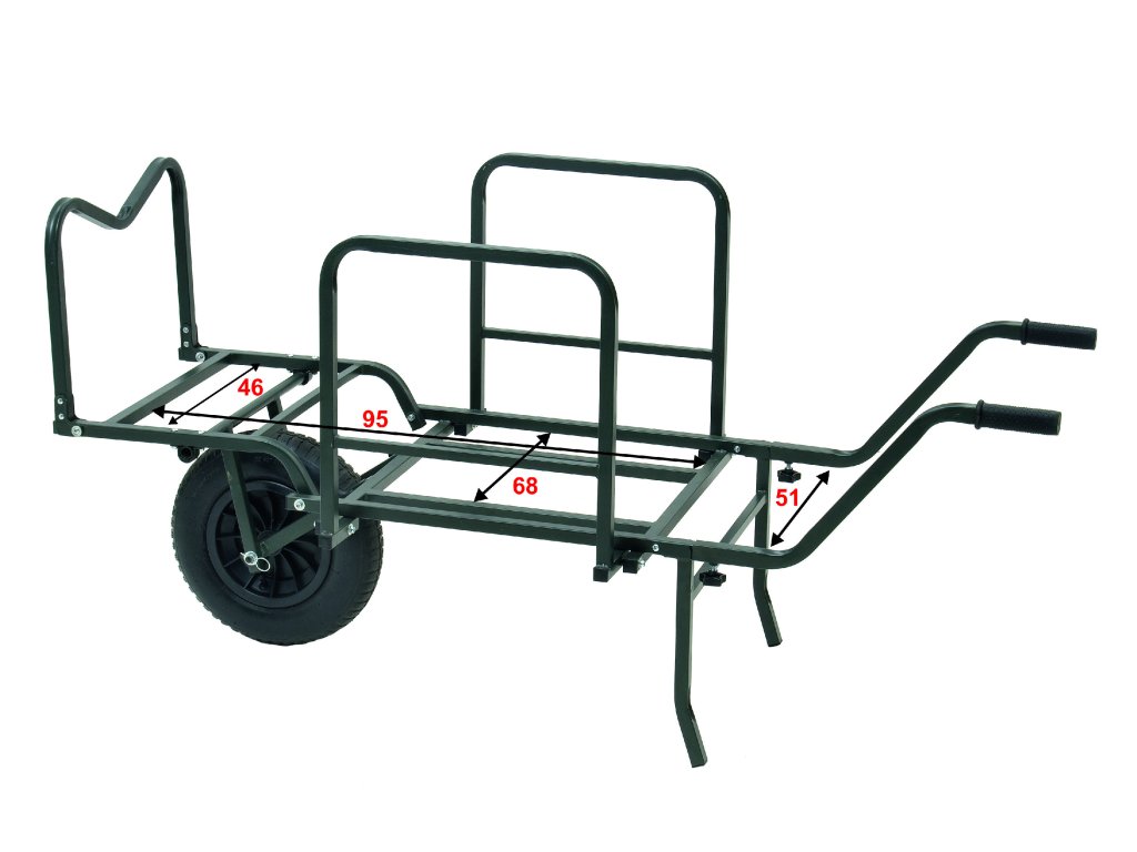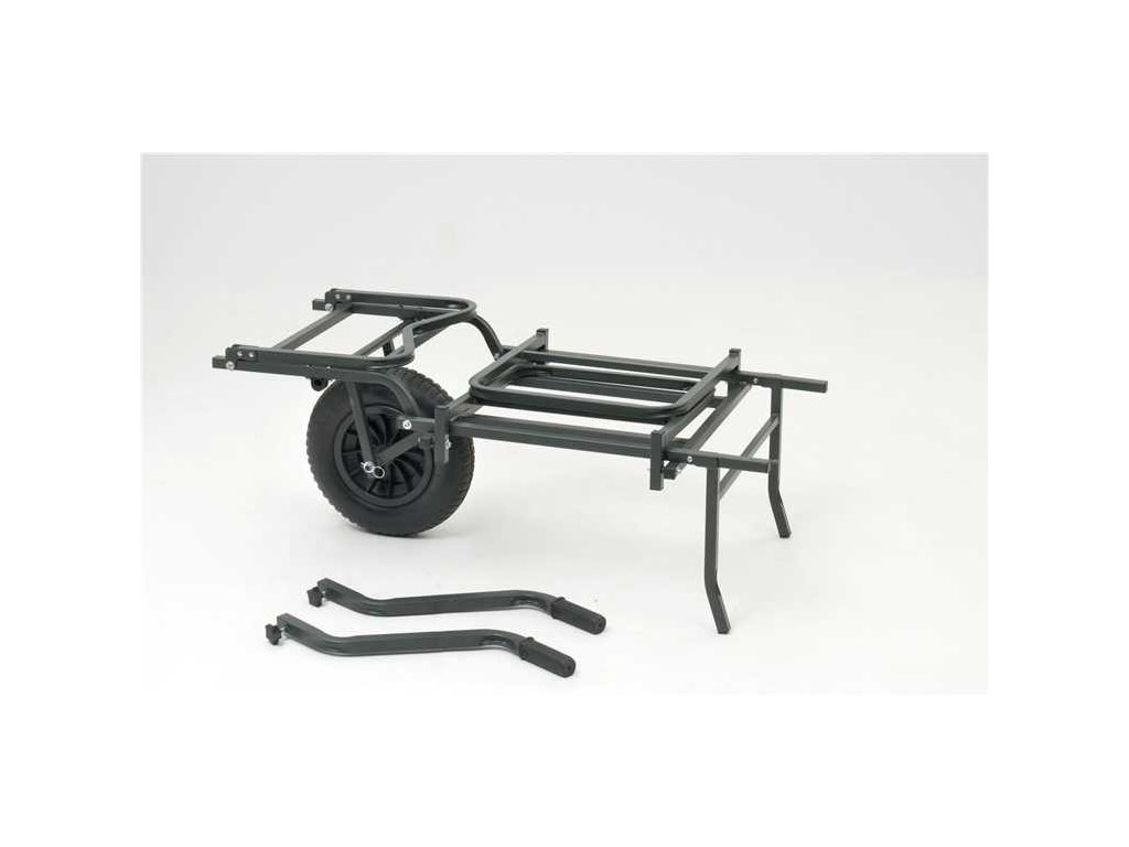 Velký a prakticky řešený přepravní vozík na rybářské náčiní. Důmyslný systém konstrukce umožňuje složení během několika okamžiků. Kompaktní rozměry po složení umožňují snadnou přepravu v autě. Velkou výhodou tohoto vozíku je optimální umístění velkého nafukovacího kola přímo v těžišti, což zajišťuje snadnou manipulaci i s těžkým nákladem.Pozor – huštění pneumatiky vozíku - na kole je napsáno 25 PSI, ale nejedná se o Bary! Převedeno na Bary je to 1,723 Bar - ideální je hustit na 1,5 Baru!
